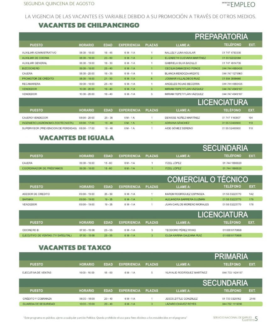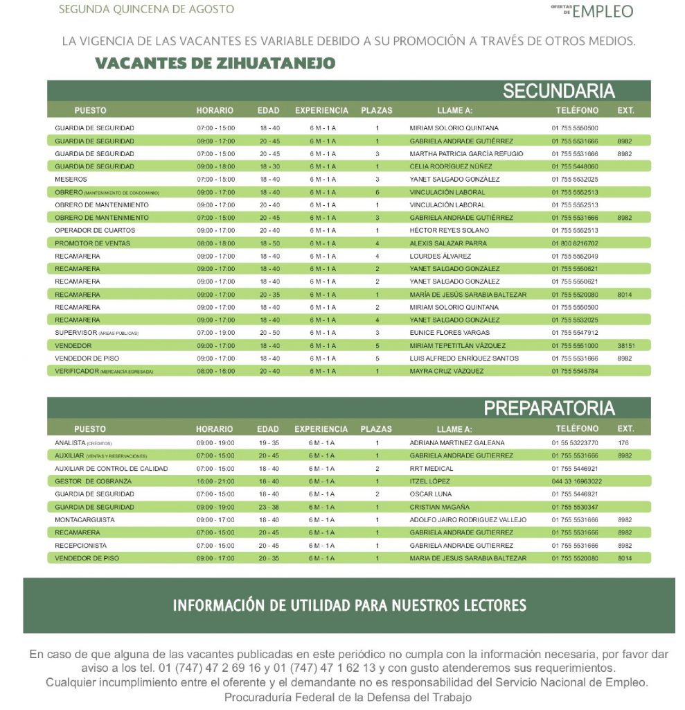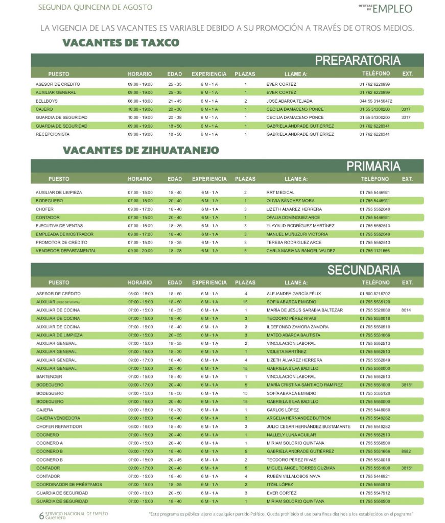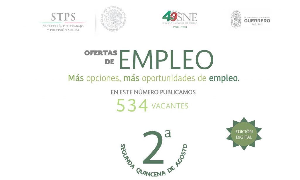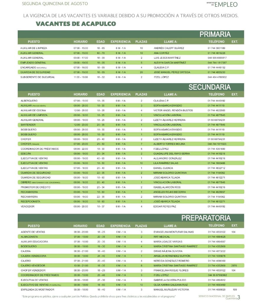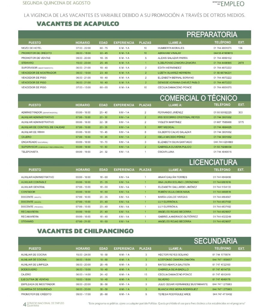 Ofertas de trabajo en todo Guerrero 2a quincena agosto -- Acapulco, Chilpancingo, Tlapa, Iguala, Zihuatanejo, Tixtla, etc.